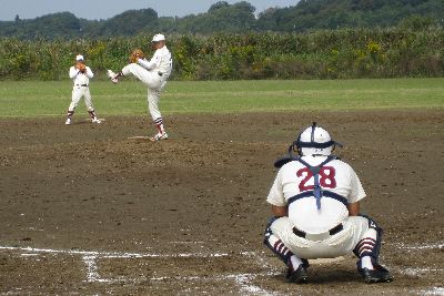 先発堀江は3回までは毎回走者を背負うが、尻上がりに調子を上げて4、5、6回と3人づつで締めて無失点で役目を終えた。 6回裏にも四球と相手の失策と2安打を絡め、3点を追加。10−0となる。 最終回、堀江からリレーした八木は、2死から安打と四球で走者を出すが1失点で切り抜けた。 カラスが12安打10得点を奪い勝利を収めた。 |